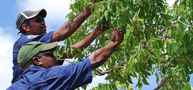 Nyul Nyul Ranger displays the fruit of Goolm, Grewia breviflora. Photo: Damian Kelly