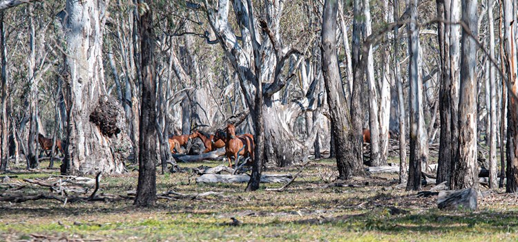 Top image:Feral horses in a woodland in Victoria. Image: cafuego CC BY-SA 2.0 Flickr