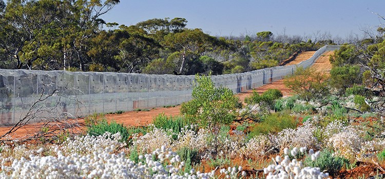 Top image: Feral predator exclosure fence at Mt Gibson. Image: W Lawler, Australian Wildlife Conservancy